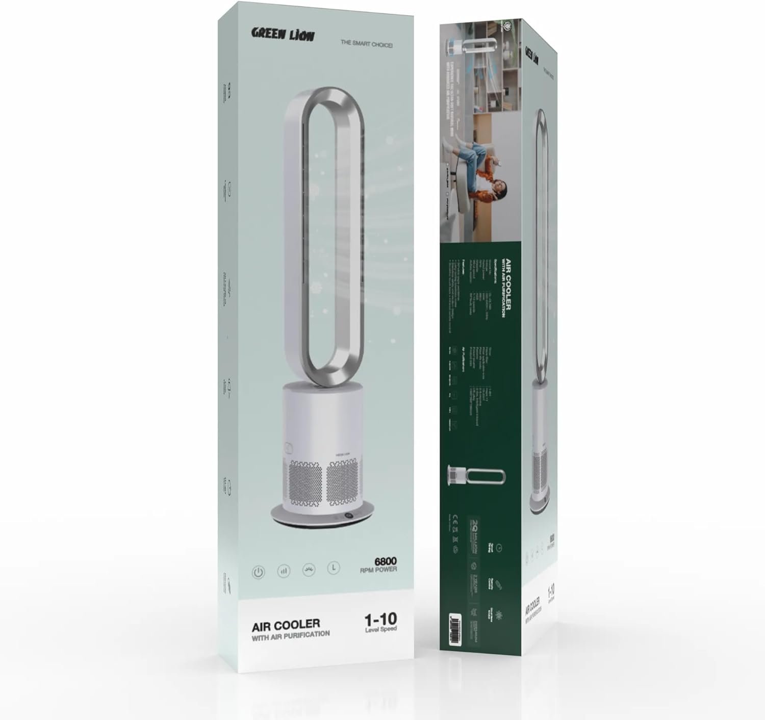 Green Lion Air Cooler With Air Purification Operates Differently From Traditional Fans. Its Hepa Filter Is Hepa11 And Has A Lifespan Of 3 To 6 Months. It Uses 220-240 Voltage Or 50Hz. It’S Covered By Abs Materials. It Has Wind Speeds Ranging From 1 To 10 And Features A Natural Wind Setting. Smart Timing And Remote Control Are For Easy Operation, And The Brushless Motor Ensures Quieter Operation And Increased Longevity. Ultimately, It Features An 80° Wide-Angle Oscillation To Distribute Air Evenly Throughout The Room.