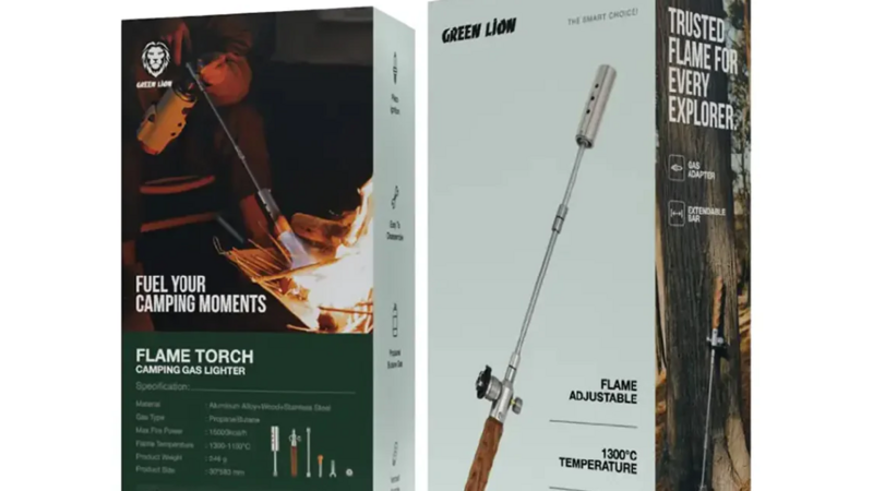 The Green Lion Flame Torch Camping Gas Lighter is designed to meet the demands of outdoor enthusiasts, offering versatility and durability for various activities. Crafted from premium materials such as aluminum alloy, wood, and stainless steel, this lighter ensures long-lasting performance. It is compatible with both propane and butane gases, delivering a powerful flame with a maximum firepower of 15,000 kcal/h. This makes it an ideal choice for camping, barbecues, and other outdoor adventures.