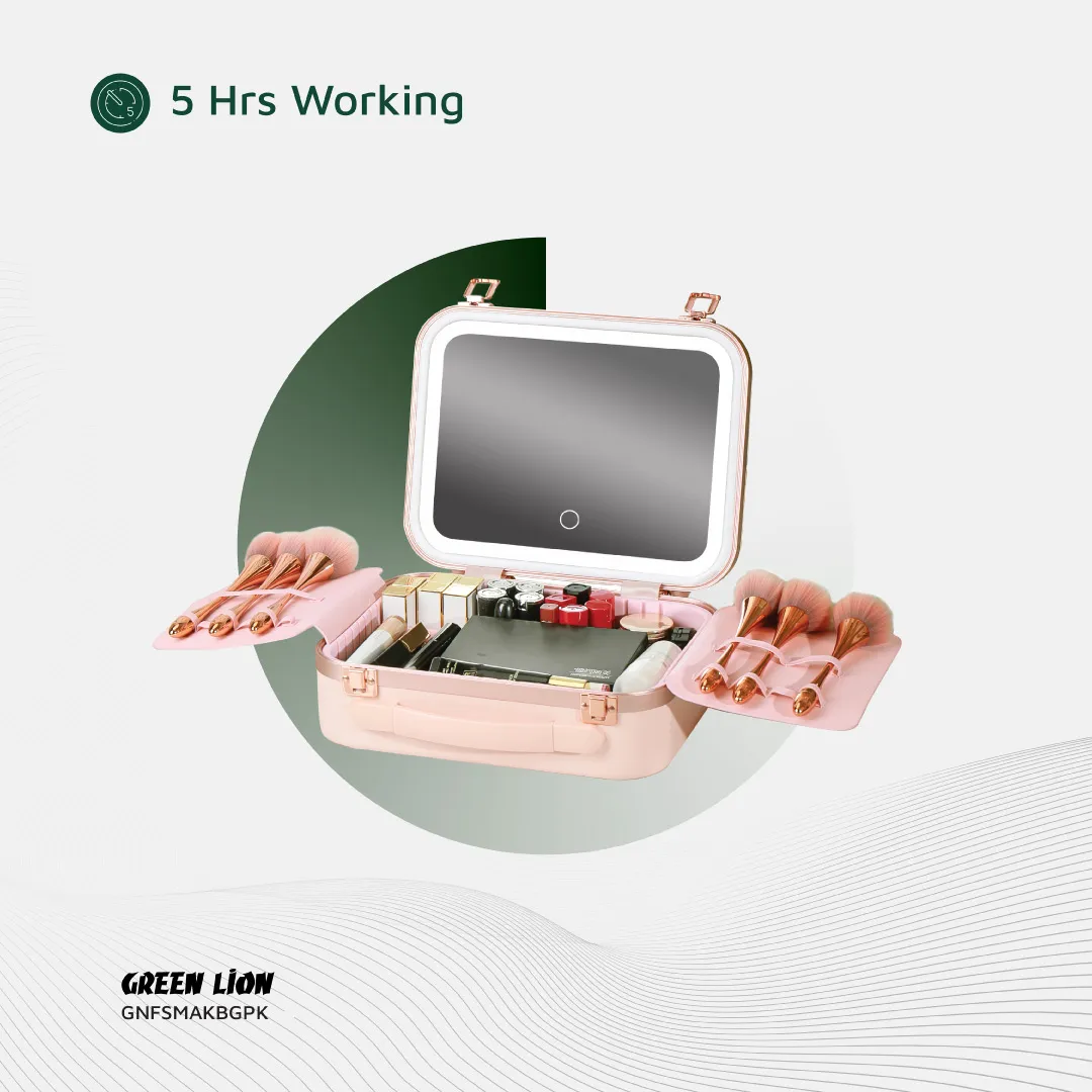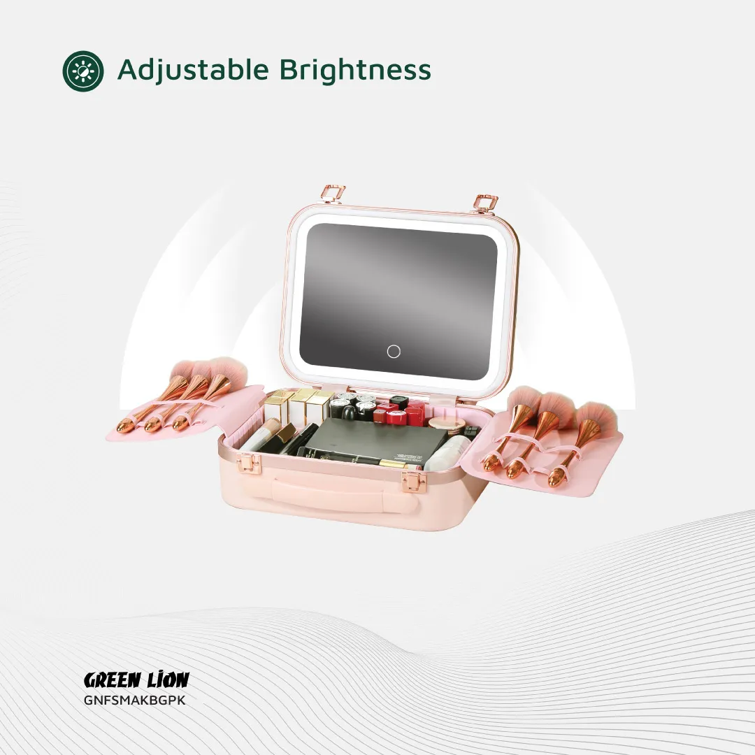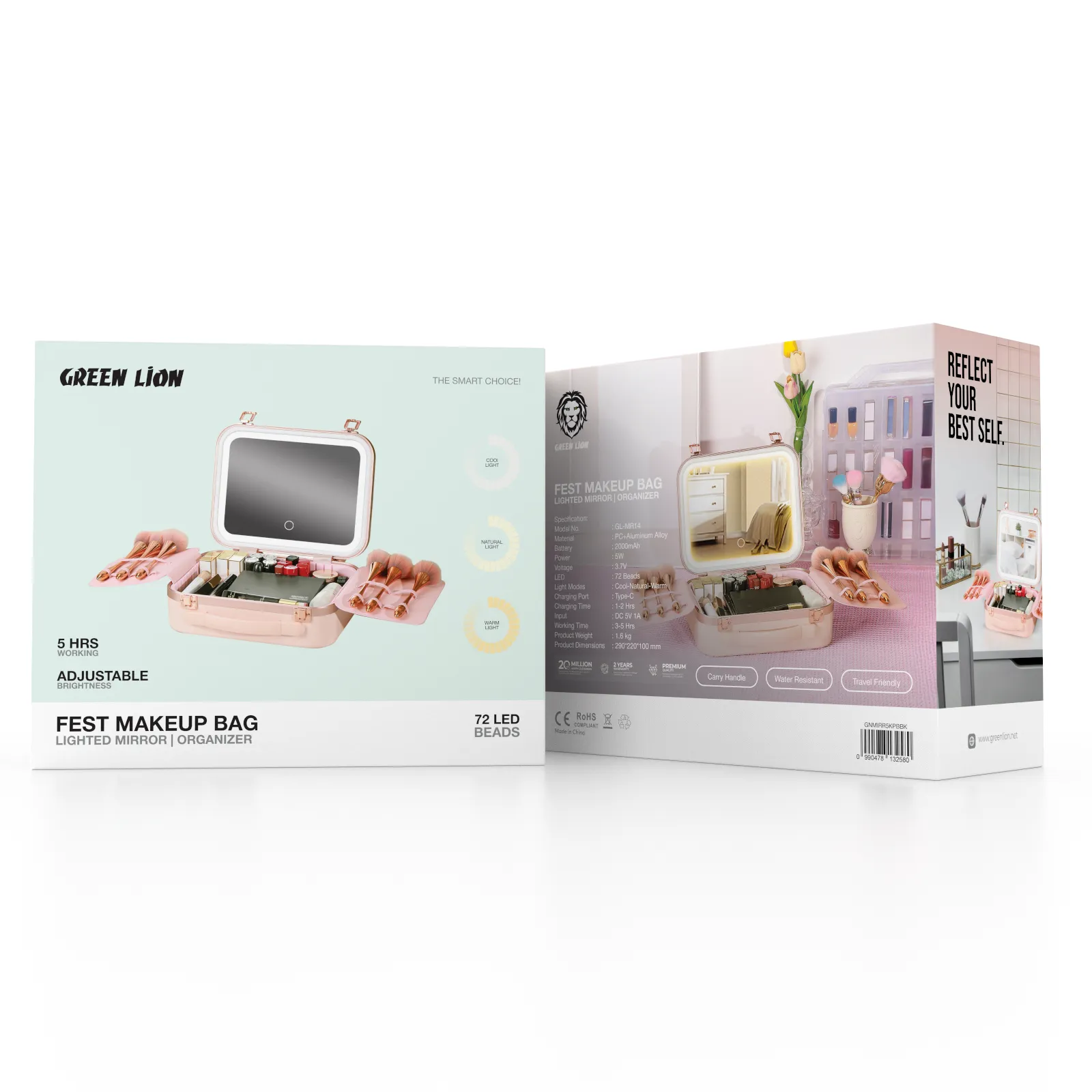 حقيبة مكياج “جرين ليون فيست” متعددة الاستخدامات، أنيقة، ومتطورة، لتخزين مستحضرات التجميل. تتميز بمتانتها وخفة وزنها بفضل تصنيعها من البولي كربونات وسبائك الألومنيوم. تضمن بطاريتها بسعة 2000 مللي أمبير/ساعة، مع 72 مصباح LED، أوضاع إضاءة متنوعة، باردة، وطبيعية، ودافئة، مما يُضفي عليها إضاءة مثالية. يتيح مفتاح التحكم باللمس سهولة تعديل السطوع، بينما يُحافظ قسم التخزين القابل للتعديل على تنظيم مستحضرات التجميل. تُحسّن المرآة عالية الدقة من دقة وضع المكياج، مما يُسهّل عملية وضعه. بفضل سهولة حملها، تُصبح هذه الحقيبة قطعة أساسية لعشاق التجميل أثناء التنقل. الخامة: البولي كربونات وسبائك الألومنيوم