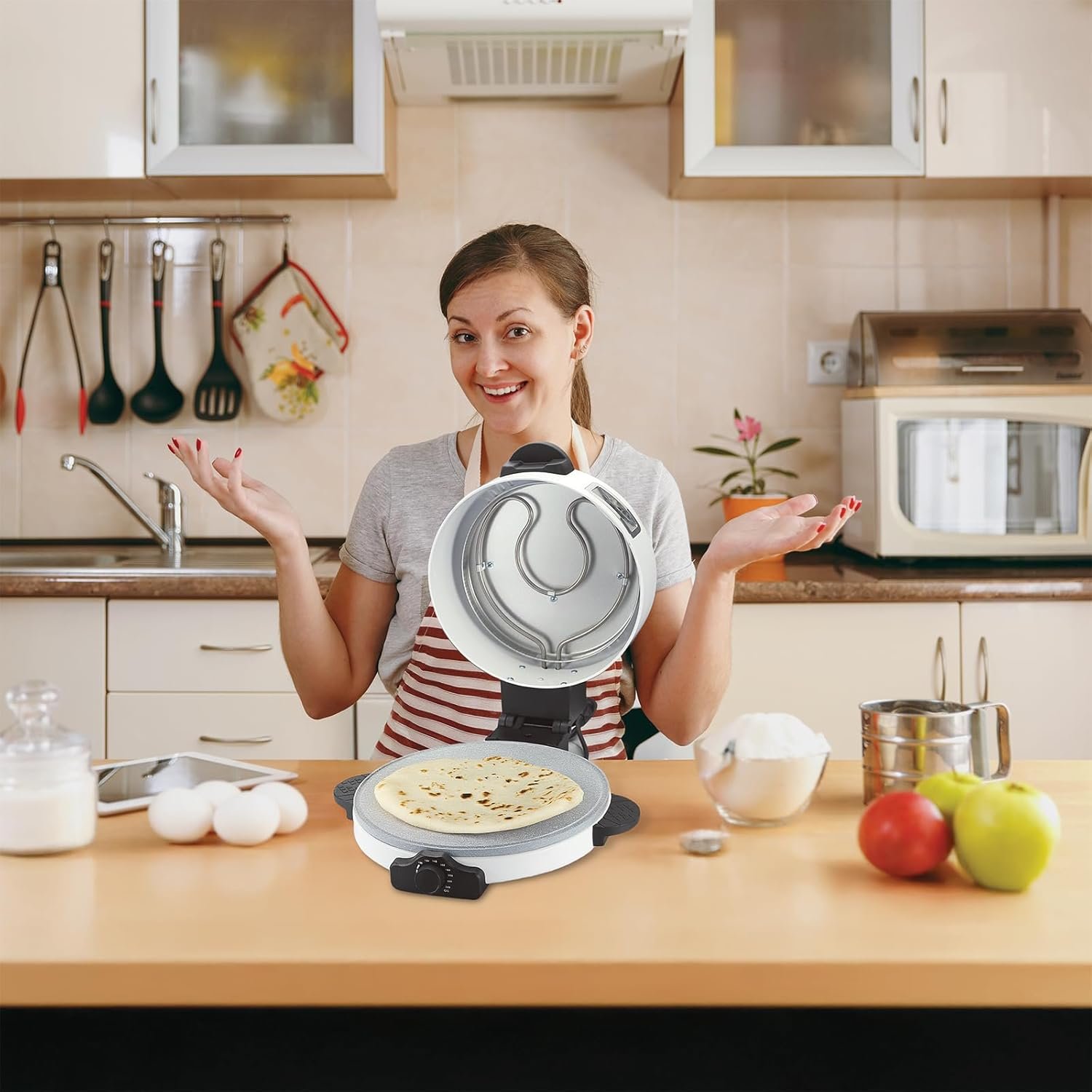 آلة صنع الخبز الكلاسيكية من “جرين ليون” هي آلة رائدة بقوة 2100 واط، باللون الأبيض، مصممة لتبسيط الخبز المنزلي وجعله أكثر دقة وكفاءة. هذا بالإضافة إلى ميزة سهولة التنظيف مع طلاء غير لاصق على صينية الخبز لاستخدامه للحصول على أفضل نتائج خبز. تتوفر آلة الخبز مع عنصر تسخين مصبوب، مما يوفر توزيعًا متساويًا للحرارة في جميع الأوقات لخبز مسلوق تمامًا في الفرن. يمكن تغيير إعدادات درجة الحرارة يدويًا لتناسب نطاقًا واسعًا من عمليات الخبز (من 100 إلى 240 درجة مئوية). تنظم فتحة تهوية صامتة عملية التبريد، وفي الوقت نفسه، تتميز بتصميم مادي رائع يضمن طول العمر. يُعد توصيلها بمقبس BS بطول 1.5 متر إحدى الميزات التي تجعلها مرغوبة فعليًا كأداة مساعدة داخل المنزل لأنها تنتج 2100 واط من الطاقة أثناء التشغيل عبر أسلاك طاقة 220 فولت، ويمكن أن يجعل أدائها شيئًا موثوقًا وقويًا في المطبخ. هذا المنتج آمن للاستخدام في غسالة الأطباق، ولا يحتاج إلى صيانة تقريبًا.