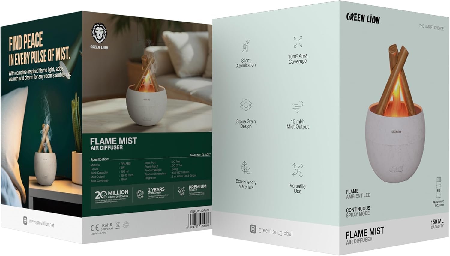 معطر جو “غرين ليون فليم ميست” سعة 150 مل، جهاز أنيق وعملي يُضفي على مساحتك رائحة منعشة وتأثيرًا مُهدئًا يُشبه اللهب. بفضل خزانه سعة 150 مل، وقدرته على إنتاج رذاذ يتراوح بين 10 و15 مل/ساعة، يُضفي جوًا هادئًا مثاليًا لغرف النوم والمكاتب والمساحات الصغيرة. يُضفي تصميمه الخشبي لمسة طبيعية وأنيقة على ديكورك.